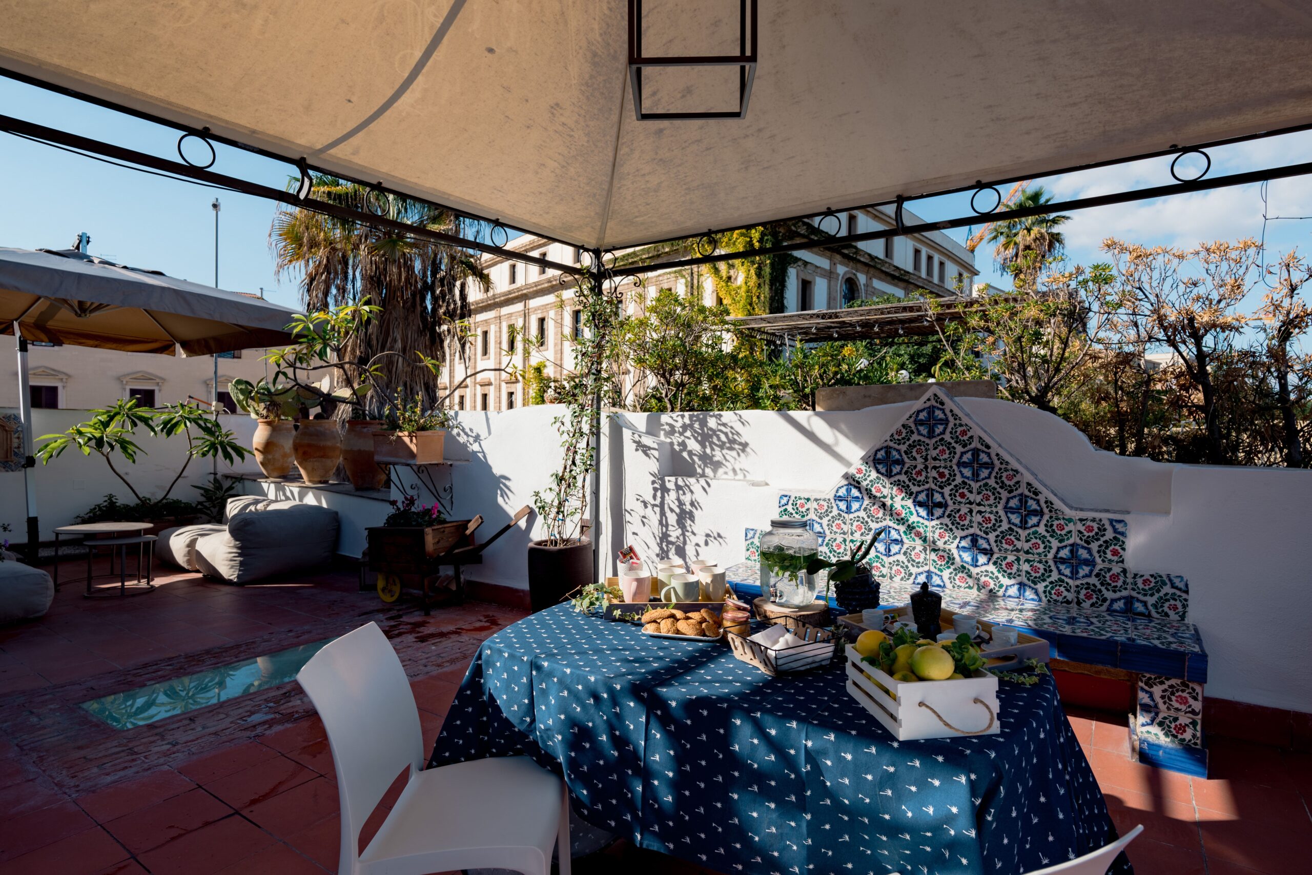 Casa appena appena ristrutturata in un palazzo storico con giardino privato su piazza Kalsa nel cuore del centro storico della Città di Palermo. Composta da una stanza da letto, bagno con ampia doccia, zona living con cucina e divano letto, ed un ampio giardino privato
